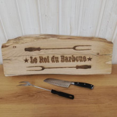 Avec cette planche à découper le Roi du barbecue, impossible de rater son barbecue, voilà une planche à découper originale qui va épater vos amis, cette planche à découper peut également servir de planche de présentation avec ses deux poignées intégrées. Cette pièce en chêne est unique. Le chêne est issu de notre région. Le cadeau idéal pour la fête des...