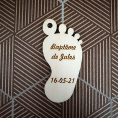 Comme le veut la tradition lors du baptême de votre enfant, vos invités repartiront avec un sachet de dragées, afin de rendre inoubliable le baptême de votre enfant optez pour le petit sujet en bois gravé en forme de petit pied qui personnalisera admirablement vos sachets de dragées.