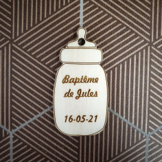 Comme le veut la tradition lors du baptême de votre enfant, vos invités repartiront avec un sachet de dragées, afin de rendre inoubliable le baptême de votre enfant optez pour le petit sujet en bois gravé en forme de biberon qui personnalisera admirablement vos sachets de dragées.