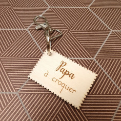 Ce petit porte clef en bois gravé est à croquer, le cadeau idéal à offrir à son papa chéri pour la fête des pères, petit, léger, mais costaud. Livré avec anneau et mousqueton.
