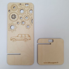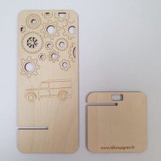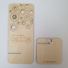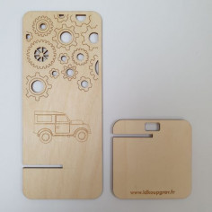 Ce support de téléphone portable est tellement pratique que vous ne pourrez plus vous en en passer, objet idéal qui se fait tout petit, se démonte et qu'on glisse aisément dans un sac à main, sac de voyage, sac de sport, etc, cet objet n'est pas seulement très utile, il est aussi très esthétique avec son motif engrenage et sa gravure d'un Defender 130....
