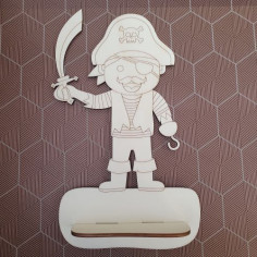 Voilà votre petit garçon prêt à vivre de nouvelles aventures sur de nouveaux océans, l'étagère décorative en forme de pirate est l'élément de décoration idéal si vous souhaitez décorer sa chambre sur le thème "je suis un pirate", cette étagère décorative en forme de pirate peut être customisée par vos soins alors laissez parler votre créativité.