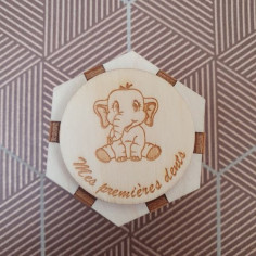 La boîte à dent en bois gravé au motif éléphant, le petit cadeau idéal à offrir lors du 1er passage de la petite souris, boîte précieuse pour conserver les petites quenottes de votre enfant