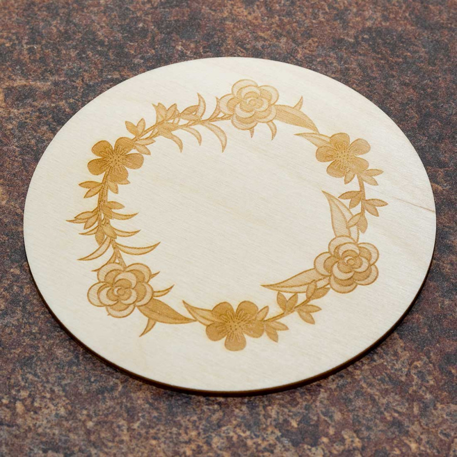 Dessous de verre en bois clair 5 mm gravés fleurs.
