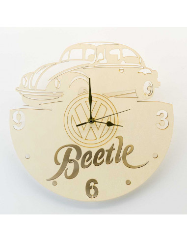 Vous êtes toujours en retard ? Plus de souci avec cette horloge en bois thème Beetle 5 mm, diamètre 35 cm.